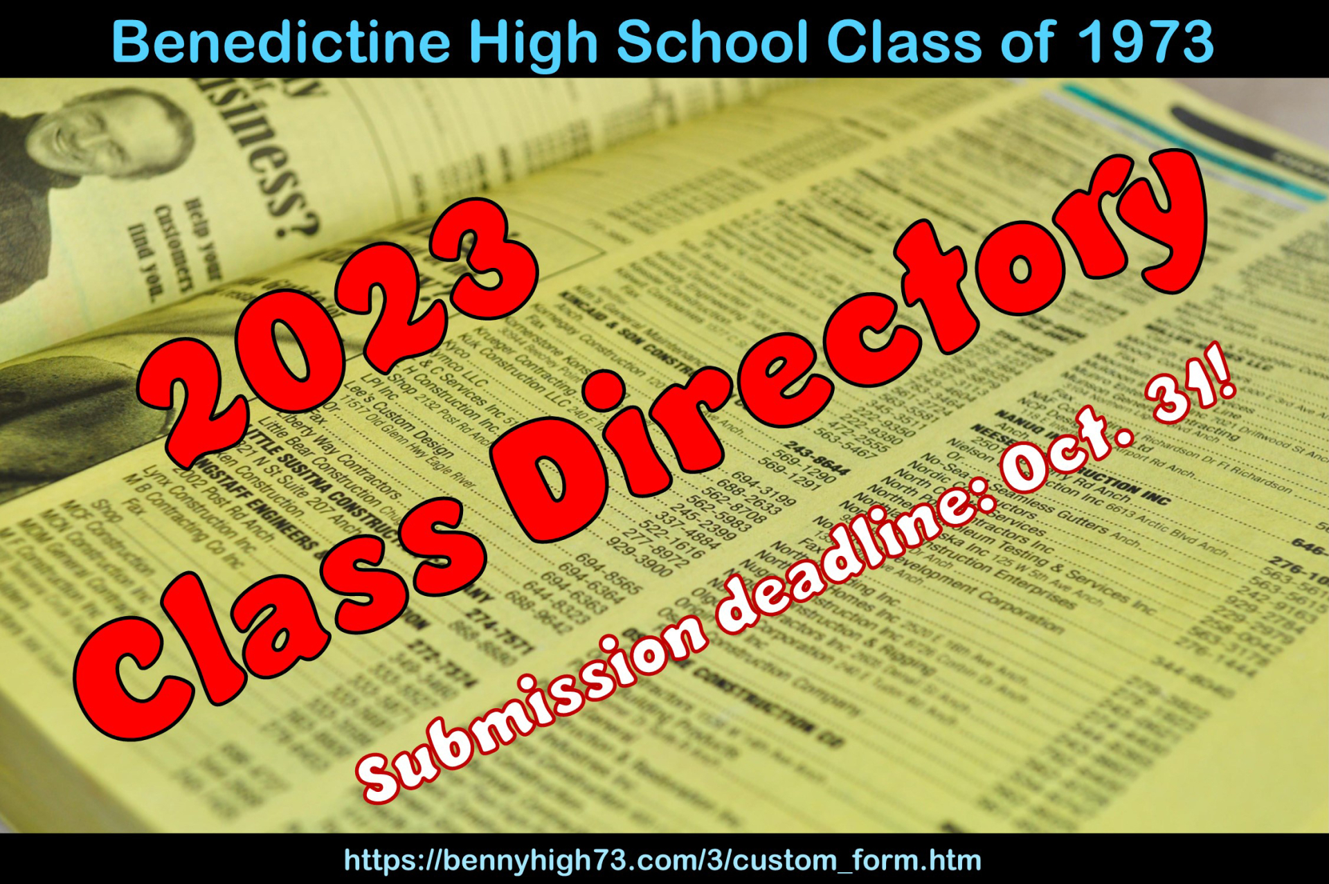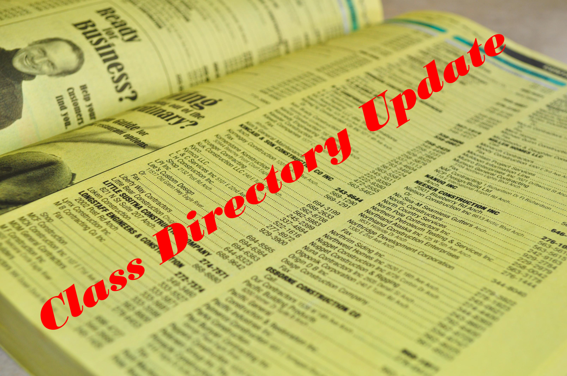 JAN. 26, 2024: We've had a number of submissions for the Class Directory Update, so here's one last chance to participate before I get on it. Please do so by Monday, Jan. 29 at noon!