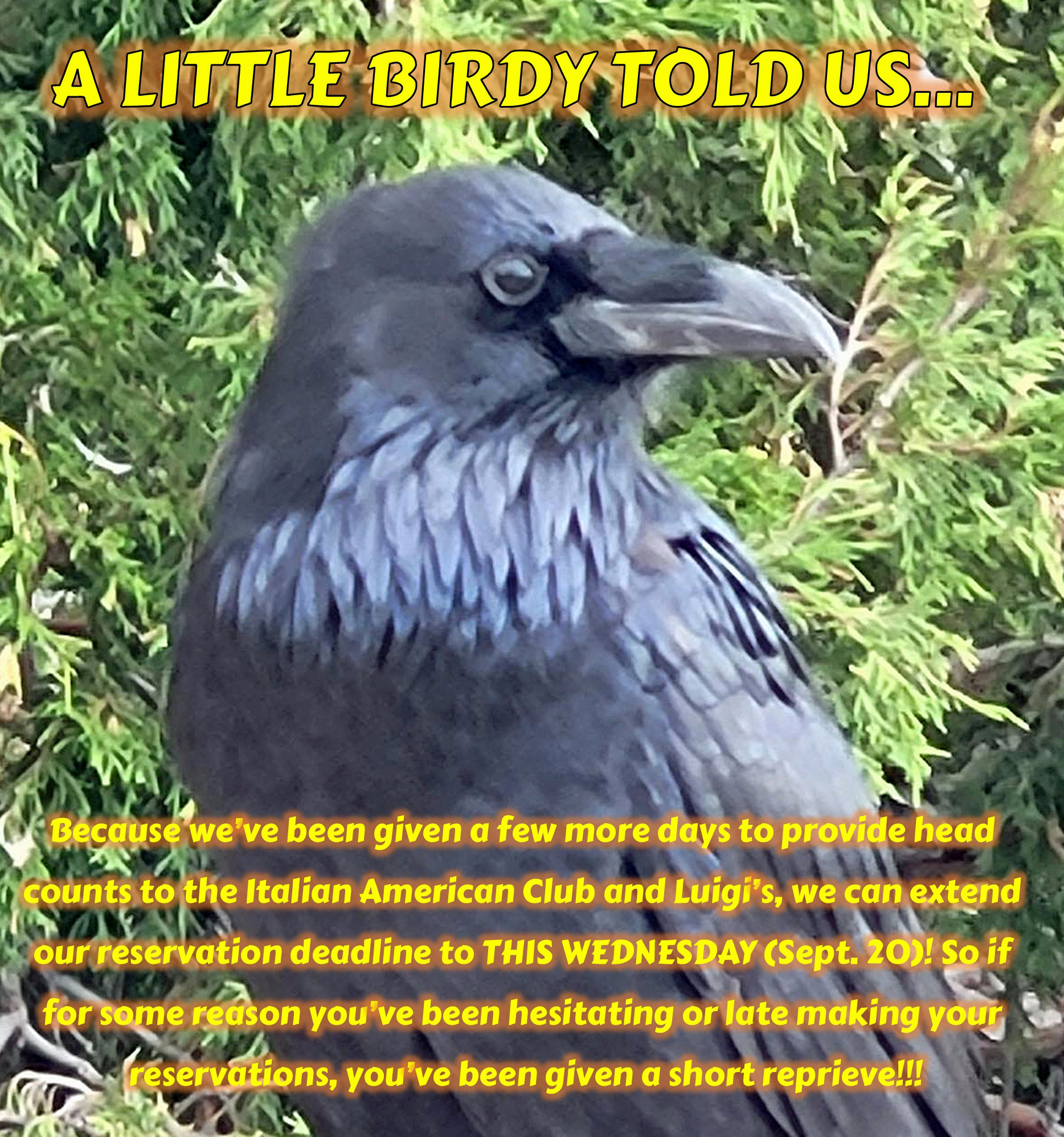 Oct. 1, 2023: For the second time in a couple of weeks, circumstances beyond our control have forced us to make changes to our schedule – this time to our Brunch! (Grumble, grumble!) Please see the image below for details. A short video will be released tomorrow (Monday) with more details.